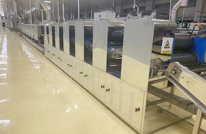 열풍 건조: 열풍 건조는 강제 공기 순환과 온도 조절을 활용하여 면의 수분을 빠르게 제거합니다. 국수는 일반적으로 컨베이어 벨트의 가열된 챔버를 통해 운반되거나 뜨거운 공기가 국수 위로 불어오는 동안 트레이에 매달려 있습니다. 이 방법을 사용하면 효율적이고 균일한 건조가 가능하며 특정 건조 매개변수를 달성하도록 조정할 수 있습니다.